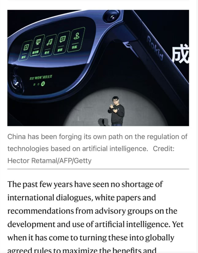 近日,国际顶级学术期刊《自然》(Nature)再次将封面聚焦杭州。12月11日出版的新一期《自然》杂志以Rokid Glasses为主题,并配发社论《中国在人工智能治理方面引领世界,其他国家必须参与》,高度肯定中国在人工智能治理领域的前瞻性探索。
