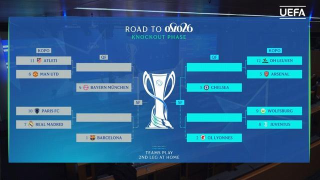 2025-26赛季女足欧冠淘汰赛抽签结束,8支参加淘汰赛附加赛的球队对阵产生,四支直接出线的球队也对应落位。皇马女足若能晋级将在1/4决赛对阵巴萨女足,阿森纳女足若晋级将在1/4决赛对阵切尔西女足。