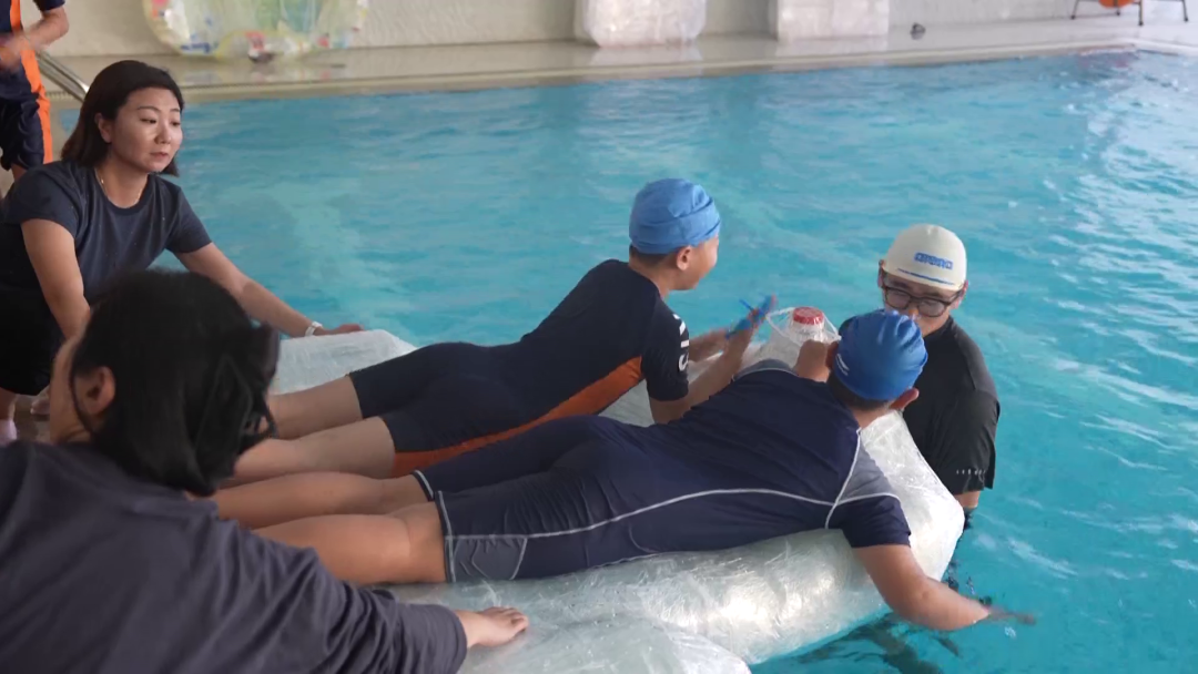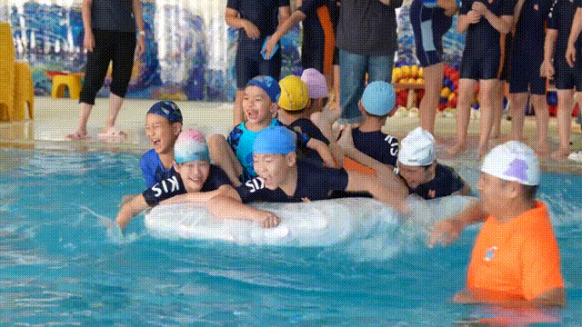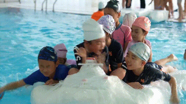 在济南开元外国语小学的游泳馆里,“船王争霸赛”火热开赛:各班的小船依次 “出征”,在赛道上破浪前行,目标是在 25 分钟内运送更多同学到对岸。这些小船,都是学生们利用身边材料自己手搓出来的。