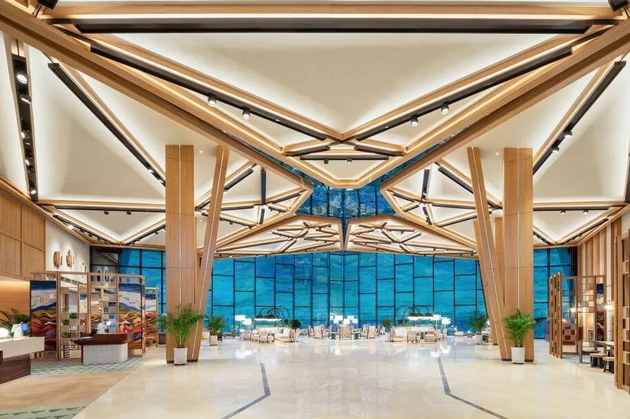 首先,全新假日酒店借以秩序感建设和中轴线设计重塑了宾客动线,并通过品牌标志性“微笑墙”与属地化文化特征的结合,进一步强化识别度和仪式感;