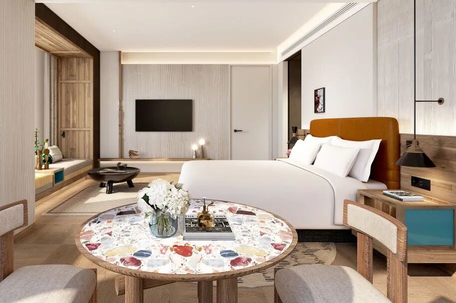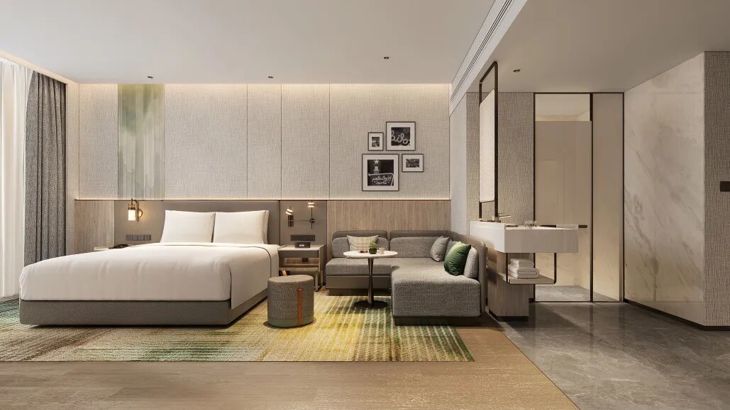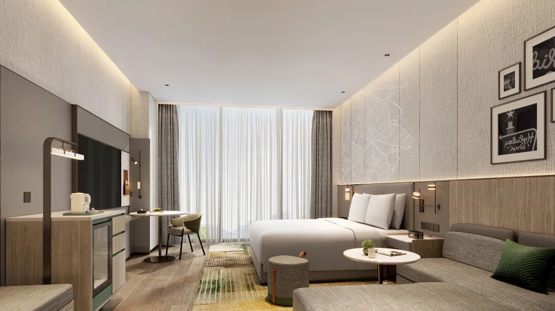 一线及新一线城市的老旧酒店或商业楼宇往往面临结构限制、租金成本高昂等现实约束,此时,“减法”逻辑变得至关重要。针对这一市场,假日酒店推出的“精选服务版”,品牌将单房参考造价控制在仅19万起(含公区分摊),通过剥离对商旅及城市休闲客人并不必需的大型宴会厅、全套餐饮设施等部分,大幅降低业主的初始投入门槛,也大大降低了后期运营的复杂程度。