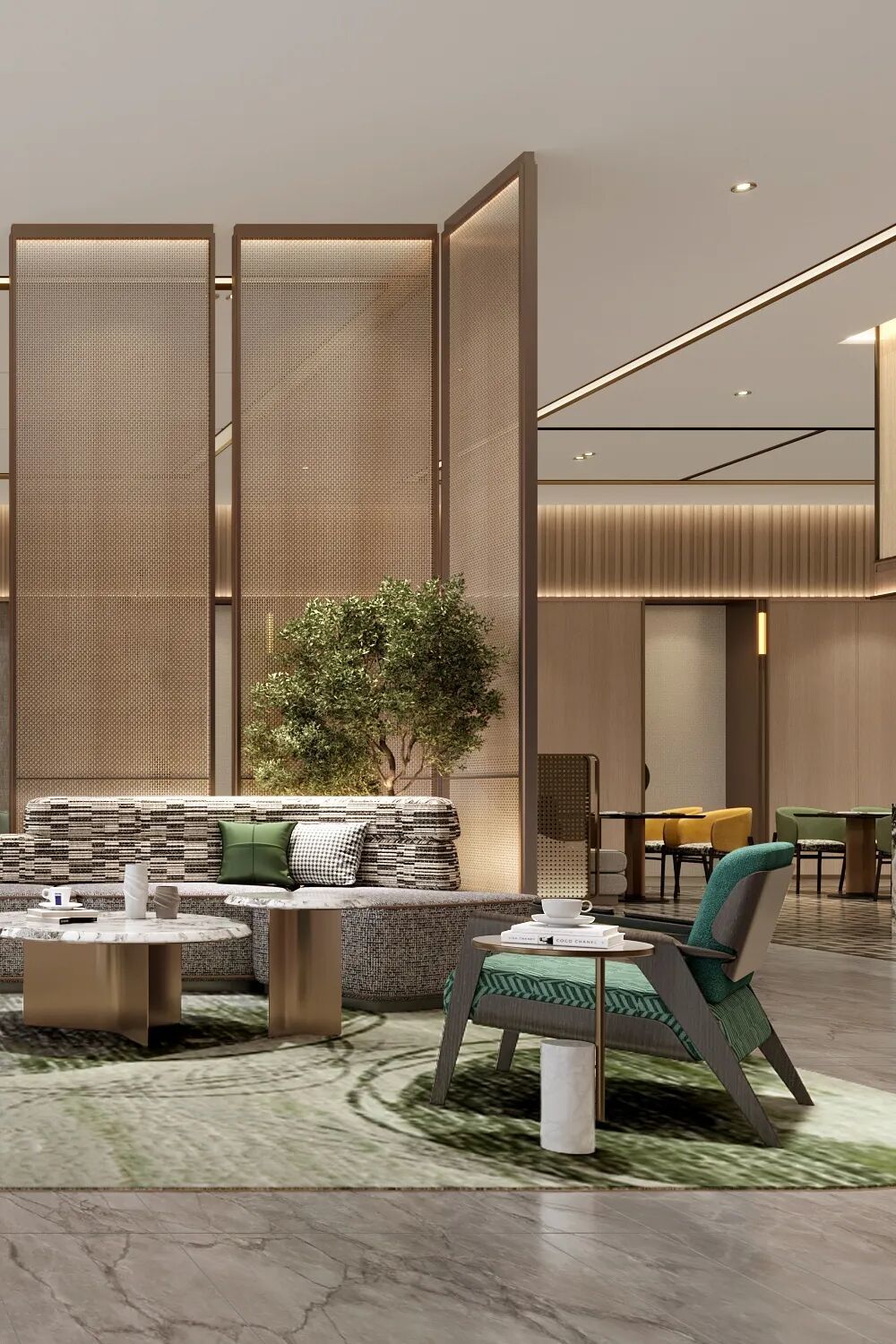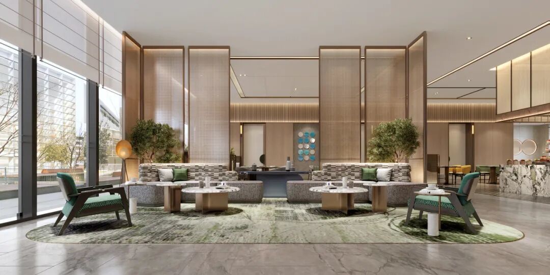假日酒店3.0点亮版-大堂,展现为一个放松、欢聚的社交中心,汇聚多种功能,最大可能和限度地促发家人与朋友间的互动连接,可让旅途中的闲暇时光也变得丰富多彩、值得回味。