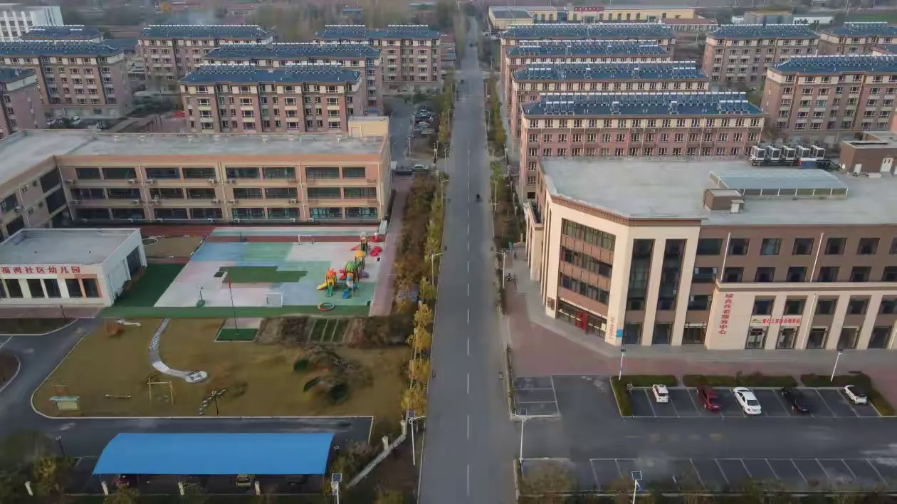 走进幸福河社区,首先映入眼帘的是整齐划一的住宅楼、宽阔整洁的街道和绿树成荫的公共空间。黄昏时分,黄河广场上热闹非凡,孩子们追逐嬉戏,老人们聊天健身,广场舞的音乐声与欢笑声交织成一首生动的幸福交响曲。