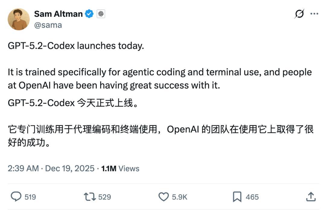 OpenAI已率先在Codex CLI、IDE扩展、云端以及代码审查中发布了GPT‑5.2-Codex,今日起已向所有付费ChatGPT用户开放,API访问也即将上线。