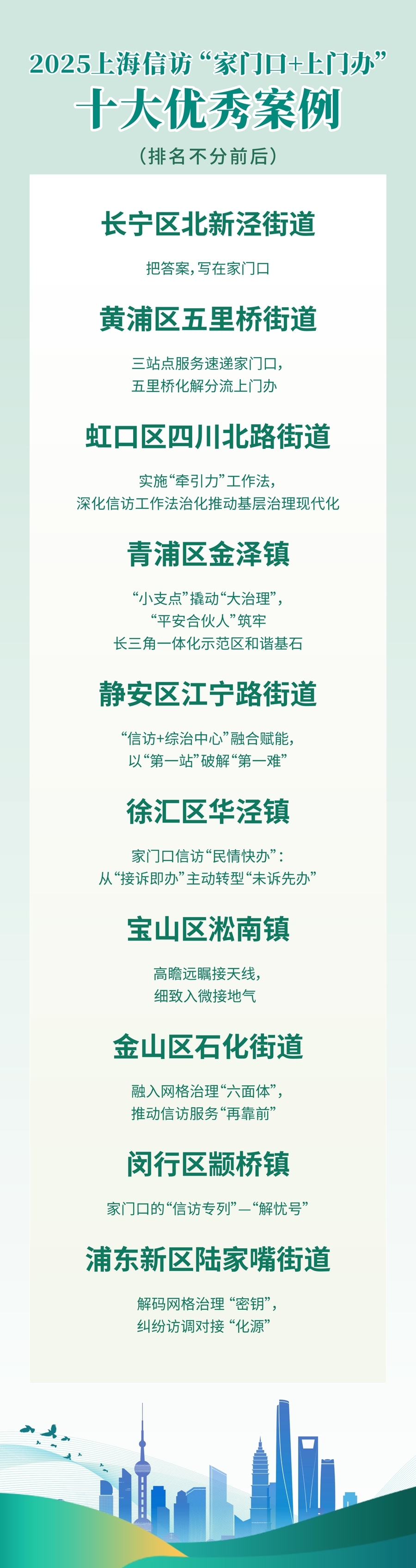 最后,让我们来看一下2025上海信访“家门口+上门办”的十大优秀案例和创新案例花落谁家。