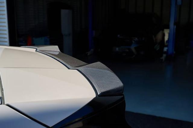 外观方面,3D Design主要是为车辆定制了一套小包围组件,包含了前唇、侧裙、后包围、尾翼等等,并且均采用了碳纤维材质,使其看上去更为运动、个性。