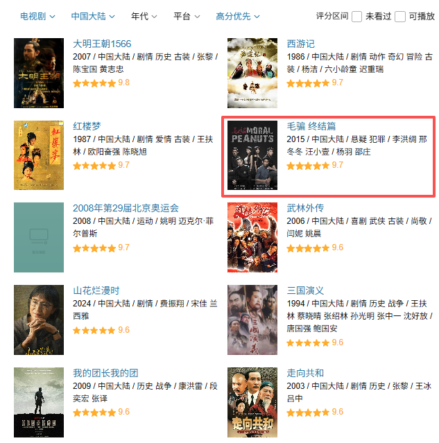 细心的朋友可能发现,在这一众经典大制作里,夹杂了一个不太知名的小成本网剧:《毛骗》系列。