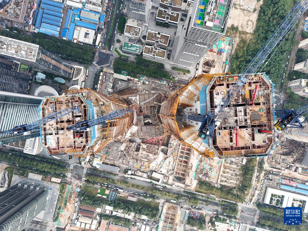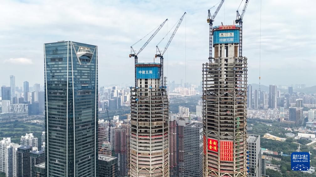 这是12月19日拍摄的深圳湾超级总部基地C塔项目主体结构封顶施工现场(无人机照片)。
