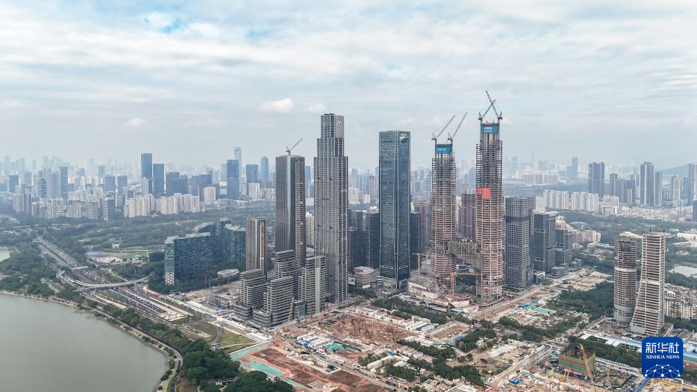 这是建设中的深圳湾超级总部基地(12月19日摄,无人机照片)。