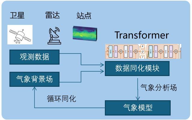 传统路径是:观测 → 数值模式消化融合(数据同化)→ 生成分析场 → AI 学习分析场做预报