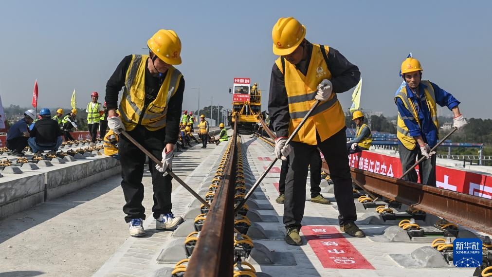 南珠高铁玉林北至岑溪东段开始全线铺轨(12月20日摄)。