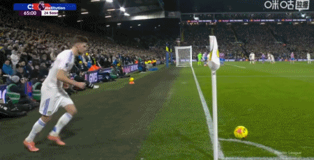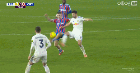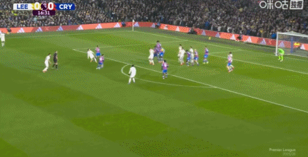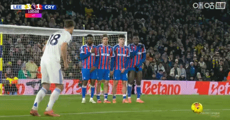 第90+11分钟,施塔赫任意球直接破门,利兹联4-1水晶宫