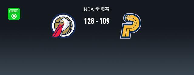 第四节鹈鹕萨迪克-贝拿下10分,步行者麦康奈尔拿下10分,最终鹈鹕128-109战胜步行者