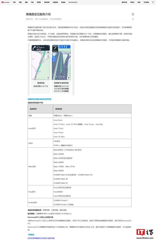 IT之家查询华为官网获悉,当前 HarmonyOS 5.0 及以上系统已经支持高精度定位服务,老用户可以正常使用,新用户若想体验高精度定位服务,需要升级至 HarmonyOS 6.0。
