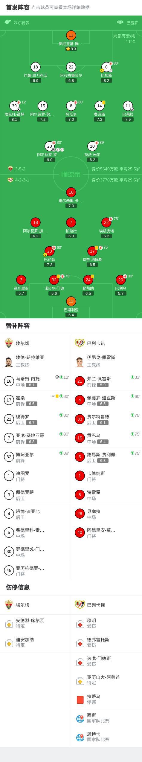 第70分钟,埃尔切球员阿尔瓦罗-罗德里格斯助攻巴莱拉打入一球。