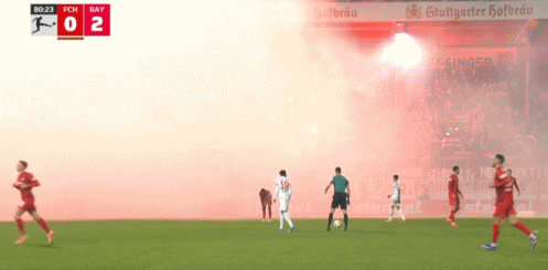 第80分钟,拜仁球迷燃放烟火导致场内烟雾弥漫,比赛一度暂停