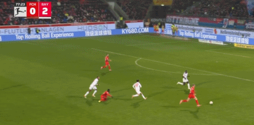 第90+3分钟,格纳布里传球,凯恩禁区内晃动后低射破门,拜仁4-0