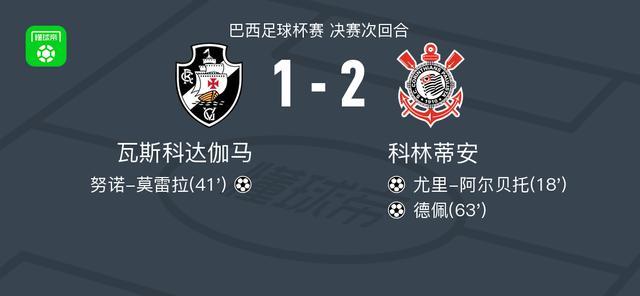 北京时间12月22日巴西足球杯赛 决赛次回合,瓦斯科达伽马对阵科林蒂安。瓦斯科达伽马努诺-莫雷拉破门。科林蒂安尤里-阿尔贝托破门,德佩破门。最终比分瓦斯科达伽马 1-2 科林蒂安。两回合总比分瓦斯科达伽马1-2科林蒂安。