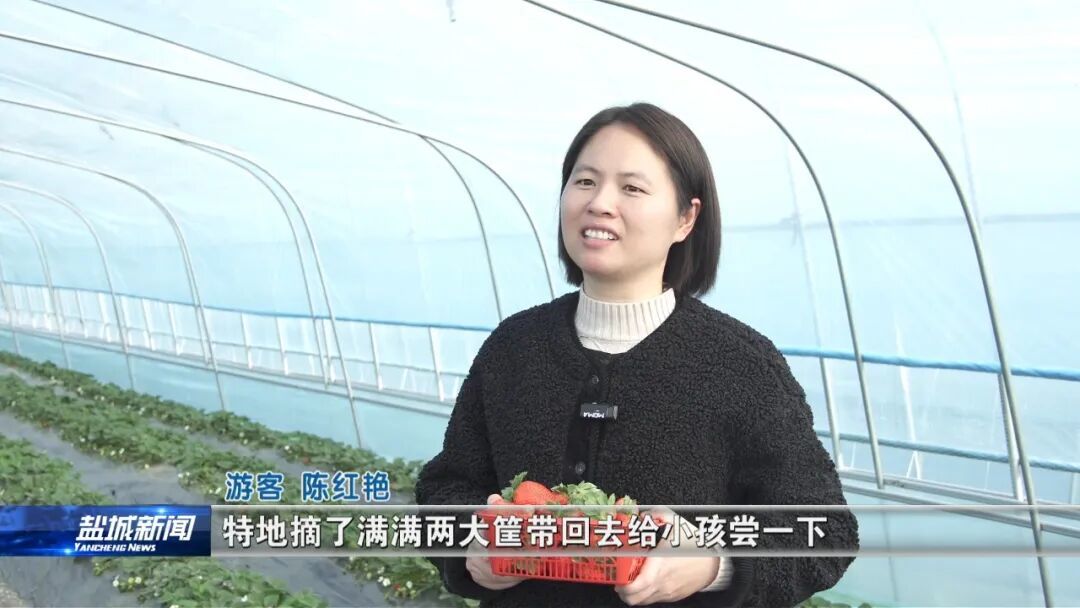 同样的甜香,也飘在了射阳县海通镇中尖社区的“路边边草莓园”棚内,湿润空气裹着草莓的果香,吸引不少市民特意赶来“打卡”。