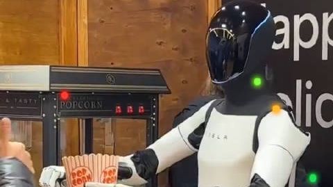 【#特斯拉人形机器人市集出摊卖爆米花#】#特斯拉人形机器人出摊卖爆米花#据看看新闻,12月20日,美国特斯拉公司推出的首款机器人“擎天柱”亮相德国传统市集,为游客们送上爆米花。视频显示,“擎天柱”机器人流畅的完成了爆米花装袋,递送等动作,在现场吸引了众多目光。