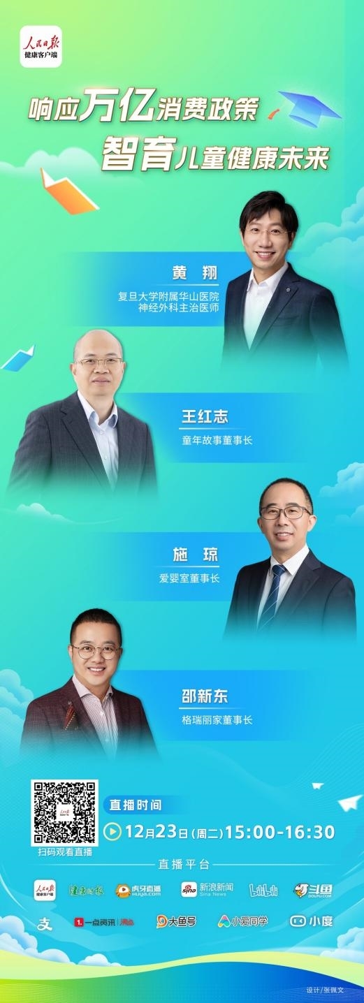 为响应国家健康消费趋势,助力儿童全面成长,童年故事再度联合国家级权威平台——人民日报健康客户端,共同发起“响应万亿消费政策,智育儿童健康未来”专题直播活动。本次直播汇聚多位跨领域专家与行业领袖,从儿童脑健康、营养科学到产业趋势,旨在为公众提供系统性的科学育儿指引。