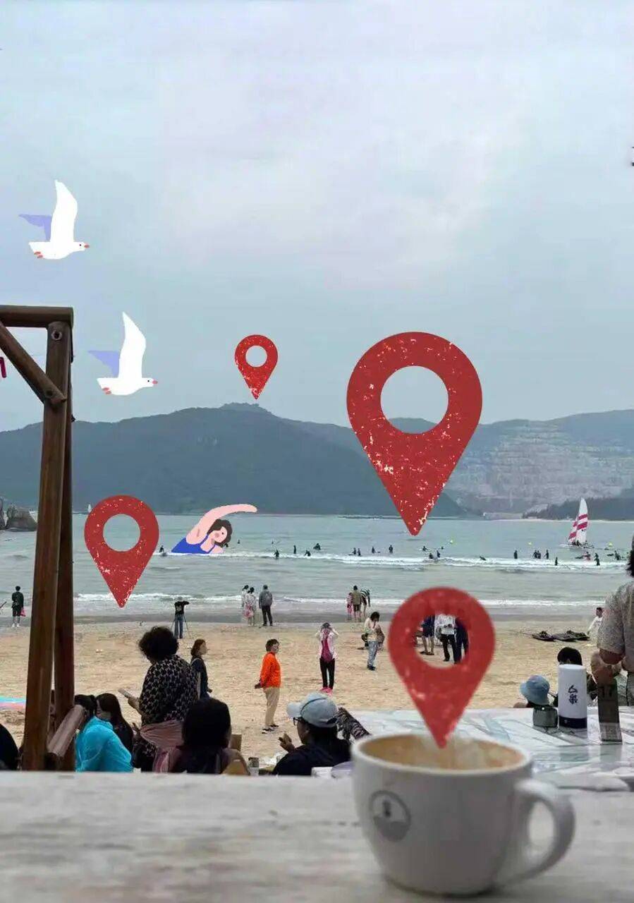 吃完早饭,我会去海边的咖啡厅拍照,点一杯咖啡,坐着看海、看书。后海村里的人看起来都很悠闲。村口的路边零散停着房车,有一家人在草地上支起桌子吃饭,大人们围坐一圈,小女孩在草地上笑着奔跑。有的车尾摆了咖啡机,车身上拉着挂布招牌。看似是当地人的阿姨向我走来,问我要不要吃小菠萝。