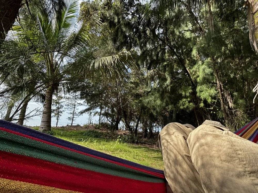 社区位于一个偏僻的小村子,紧邻大海。社区主理人安排我住在一个多人间,窗外是绿色的草坪和浅蓝色的大海。海边椰子林中间,还挂着一张彩色的吊床。社区里还有一个游泳池。我想象自己每天睁开眼就可以看到大海,还可以躺在吊床上睡觉,或是学习游泳,感到很满足。