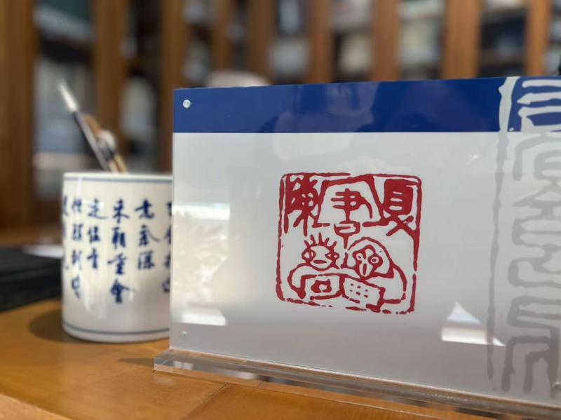 “陈夏书房”的图书上,都印有一方独特的印章。印章上方写有“陈”“夏”两个姓氏,姓氏之间是一个“书”字,“书”又被一个方框半包了起来。在印章下方,一位男士和一位女士坐在一起看书,男士面前的书上有画,女士面前则是一本文字书。首都图书馆的工作人员介绍,这是陈平原和夏晓虹的藏书章,“陈夏书房”的所有图书都印着这方印章。