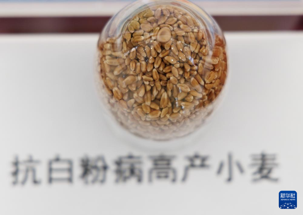 这是发布会现场展示的抗白粉病高产小麦(12月22日摄)。新华社记者 金立旺 摄