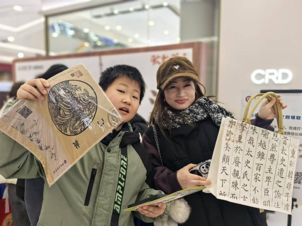 传统文化体验区前同样排起长队。安徽省图书馆工作人员现场指导雕版印刷技艺,市民们亲手执刷、蘸墨、拓印,每一步操作都让参与者沉浸式体验传统文化的匠心与韵味,不少家长带着孩子共同参与,在亲子互动中传递文化传承的意义。