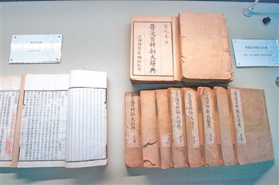 现场展出的《教育世界》和《普通百科新大辞典》