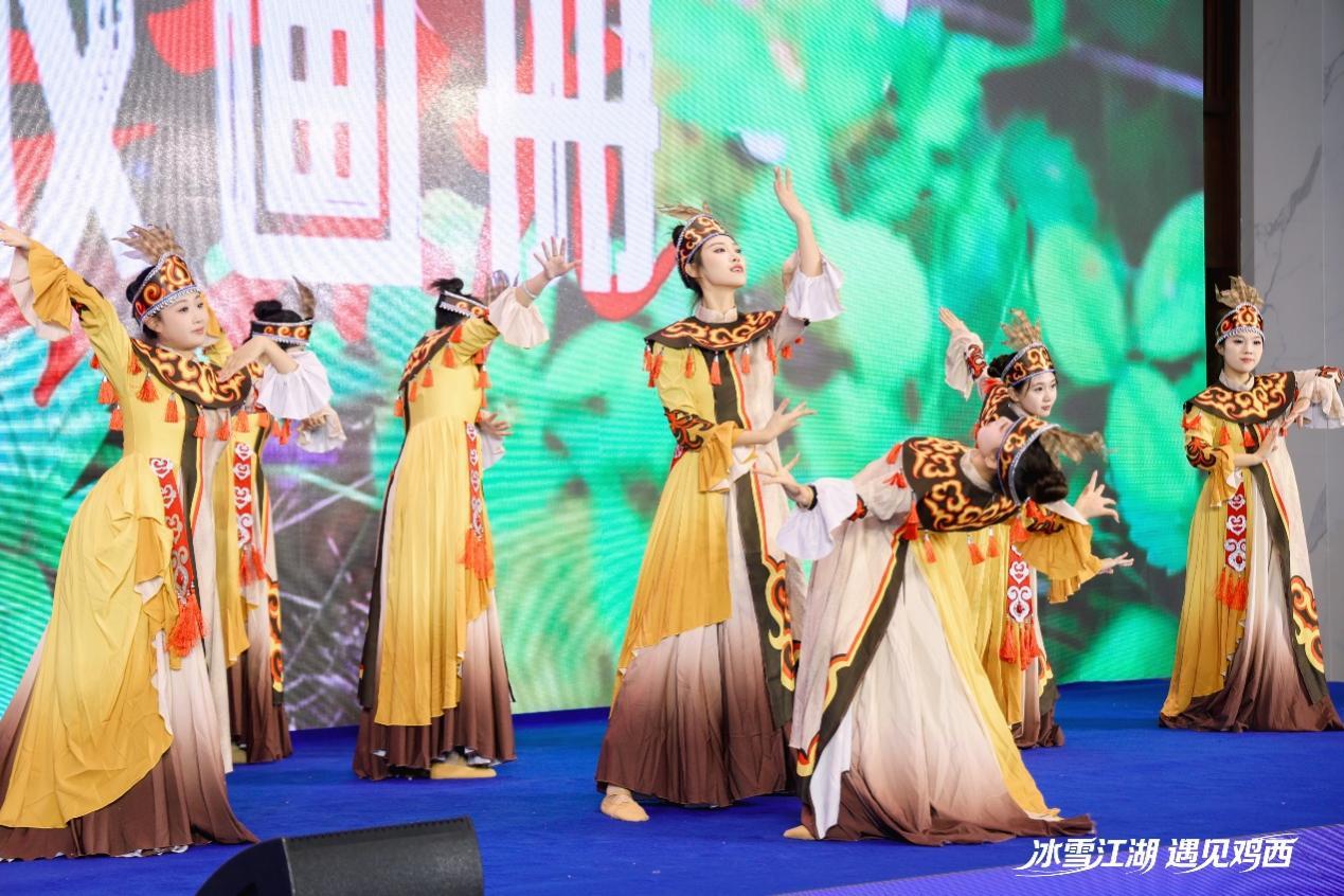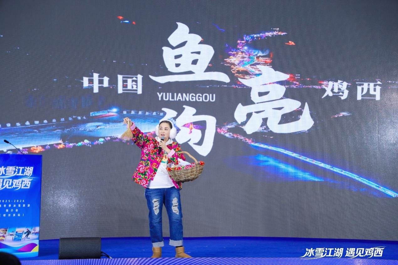 随后,虎林星推官带来“全国红色研学旅行优选目的地城市”的冬日惊喜,通过推介与舞蹈相结合的形式,展现虎头要塞的历史回响与珍宝岛的界江雪韵;密山星推官则带领大家领略“东方第一湖”兴凯湖的千里冰封与城市温情;鱼亮沟景区星推官解锁东北民俗与冰雪景致相融的山野闲趣,热炕头、扭秧歌、地道东北菜等元素勾勒出别样的冬日体验。鸡西旅行社行业代表也登台发出合作邀约,彰显了鸡西文旅携手共赢的广阔愿景。