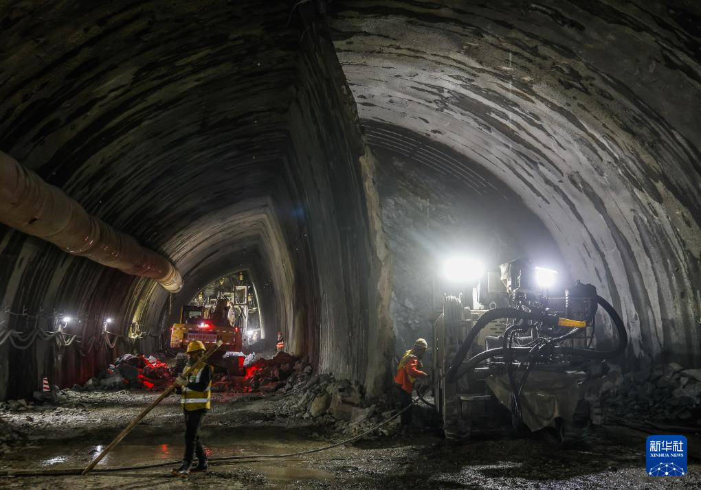 12月23日,施工人员在深圳外环田头山隧道群右线隧道开挖作业。