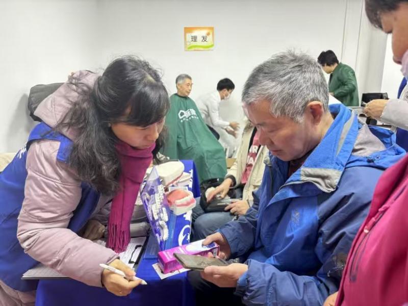 现场汇聚了10余家企业,共有30余名志愿者到场服务。健康区内,快速便捷的检测最受老年居民喜爱,来自辖区医疗机构的志愿者为居民量血压、测血糖,提供口腔健康咨询;便民区提供家电维修、缝纫补衣、磨刀服务、义务理发等服务,覆盖居民的衣食住行;咨询区里,专业律师、法律顾问面对面解答群众关注的邻里纠纷、财产保护、遗产分配等问题,并对居民情绪困扰给予专业疏导。