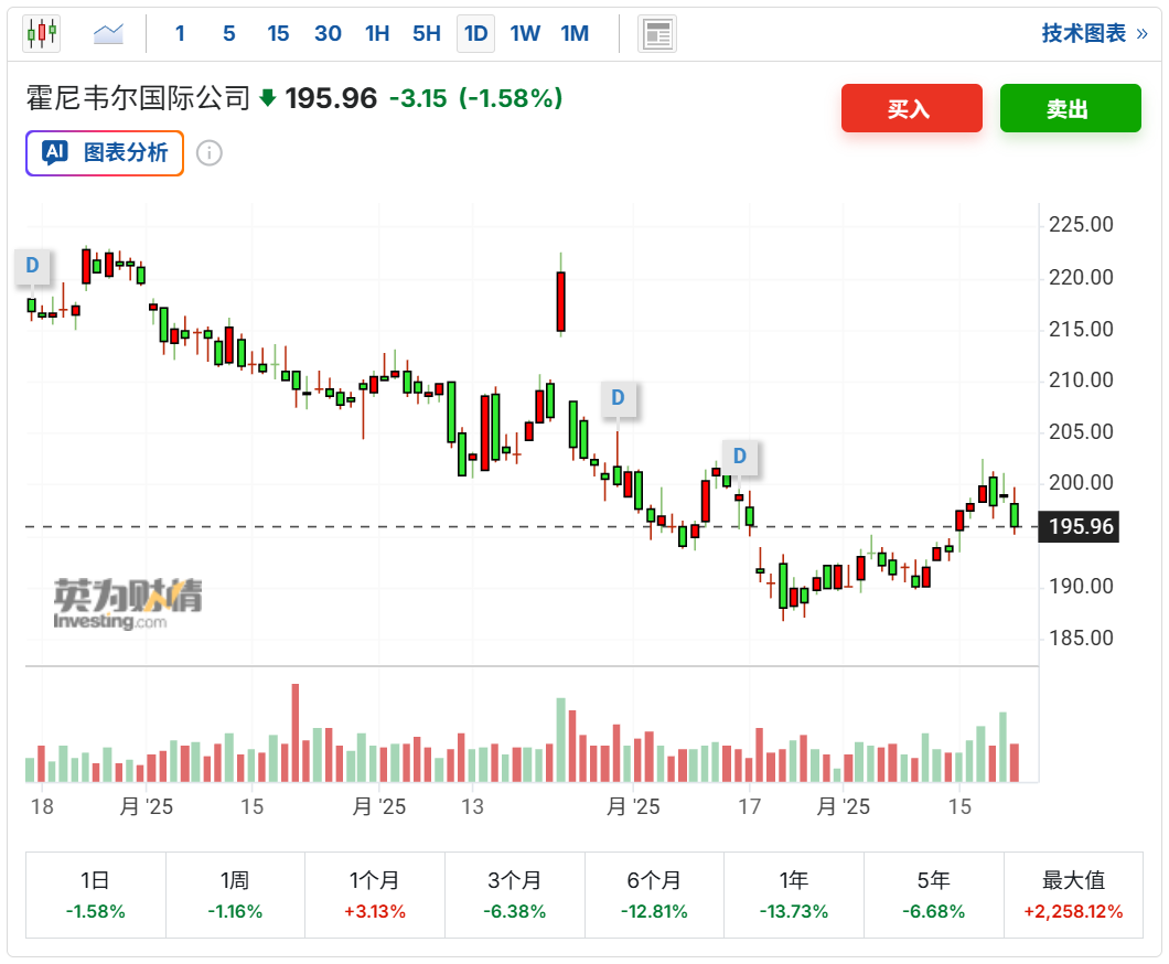 由此可见,通过对 Quantinuum 这笔占比不高但至关重要的投资,霍尼韦尔成为了量子计算赛道中风险最低的布局者。截至目前,霍尼韦尔(HON)股价年内下跌 5.5%,当前报价为 195.96 美元。据《华尔街日报》统计,分析师对其目标价的共识值为 235.95 美元。更值得关注的是,当前股价已十分接近 195 美元的目标底价,意味着这正是入场布局的最优时机。