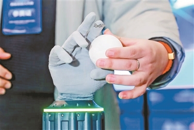 北京达奇月泉仿生科技公司带来的“应手Y-Hand M1”灵巧手正在演示抓握小球