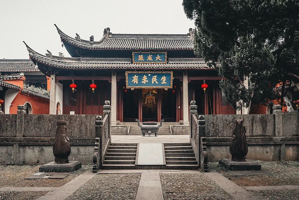 孔庙内三大独特景观最能说明其精神指向:不刻龙纹的大成殿匾额,象征“南宗避天子之讳”的自觉;“圣迹图碑廊”记载了孔子足迹在南方传播的路线;而孔氏宗祠内供奉的族谱房,则完整保存着历代南宗家族的血缘与伦理秩序。
