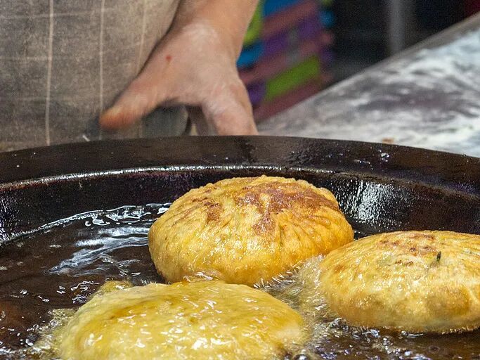 衢州人一天的生活,从街巷热辣开始。天蒙蒙亮,松园菜场已人声鼎沸。铁板上煎着搁袋饼,面皮薄如棉纸,卷入腊肉丁与辣椒末,油花在铁板上吱吱作响;旁边的蒸笼中是鸡蛋粿,糯米粉糊与土鸡蛋混拌,顶上撒衢椒碎,一口下去,是蛋香与辣意缓缓渗出的满足;再来看看衢州的包子,疏松的面团被塞得满满当当,用手撕开,馅料满满,笋干碎的鲜、萝卜丝的爽、鲜肉碎的润,先按比例调和出基底鲜香,再拌入龙游小辣椒与本土辣椒面,辣得纯粹又霸道。