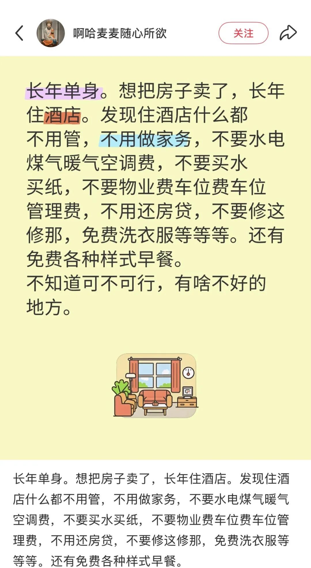 小红书上关于长住酒店求助帖