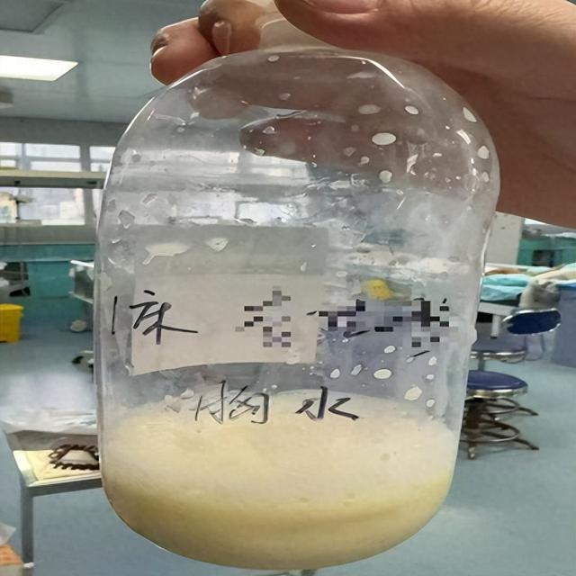 前不久,2个月的小宝宝乐乐(化名)因胸腔大量积液导致呼吸困难由当地“120”送入郴州市第一人民医院儿童医院治疗,孩子送入儿童重症监护科(PICU)后,医生们立即在B超定位下行胸腔穿刺引流术,让医务人员们震惊的是,孩子胸腔里居然抽出90ml牛奶样的白色胸水,确诊为罕见的“乳糜胸”。