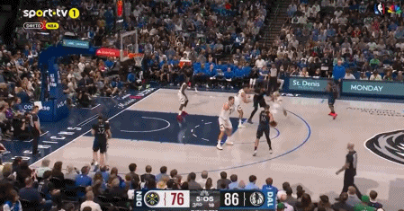 在比赛进行到第三节时,独行侠队组织进攻。弗拉格接到弧顶队友凯勒布-马丁的手递手传球,面对约基奇的跟防一个加速从右路突破杀入禁区,随后面对掘金前锋斯宾塞-琼斯的护筐完成单手暴力隔扣引爆全场。