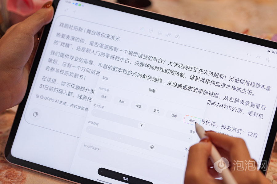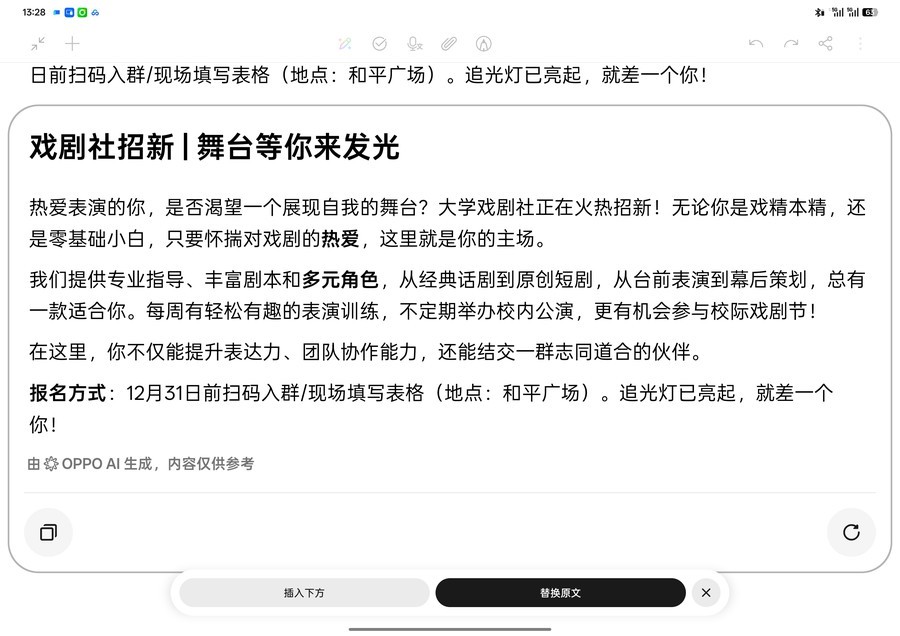 AI写作功能更是女大学生的“刚需神器”。社团招新需要撰写社媒文案、活动结束要写心得总结、课堂汇报需准备演讲发言,只需打开键盘左上角的“彩色铅笔”图标,就能召唤AI创作助手。