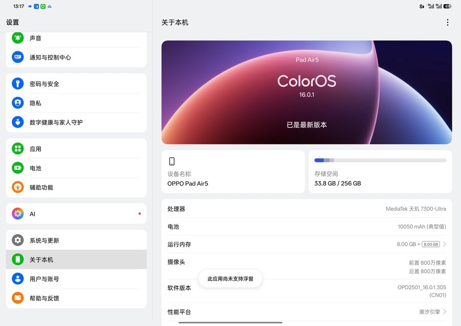 平板的长期使用体验,离不开系统的流畅支撑。OPPO Pad Air5搭载的最新ColorOS 16系统,获得了“南德48个月A级流畅认证”,承诺超四年持久流畅体验,即使是大学四年全程使用,也能保持稳定的运行状态,不会出现卡顿、掉帧等问题,长期主义用户可以放心选择。