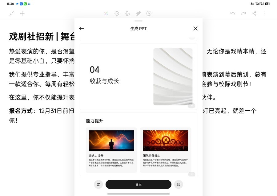 还可直接生成PPT