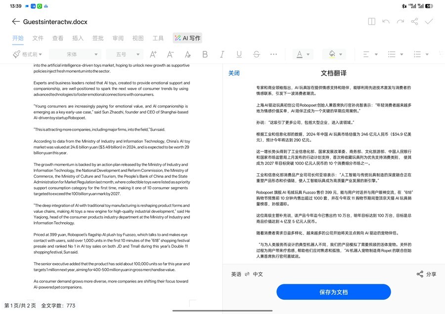 AI写作功能