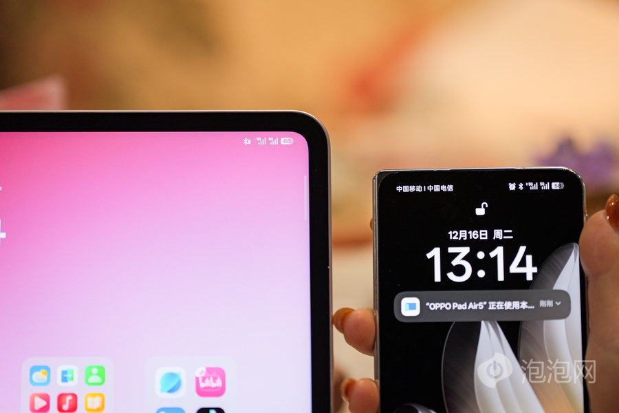 轻薄机身则让这份潮流感更具实用性。我手里的OPPO Pad Air5 Wifi版仅重597g,此外还有蜂窝版也不过599g,厚度更是控制在6.83mm,单手握持无压力,塞进双肩包、手提袋甚至小挎包都毫无负担。早八赶课路上随手携带,课间休息拿出来记笔记、刷课件,轻盈的机身完全不会成为出行累赘,真正做到了“时尚与实用兼得”。