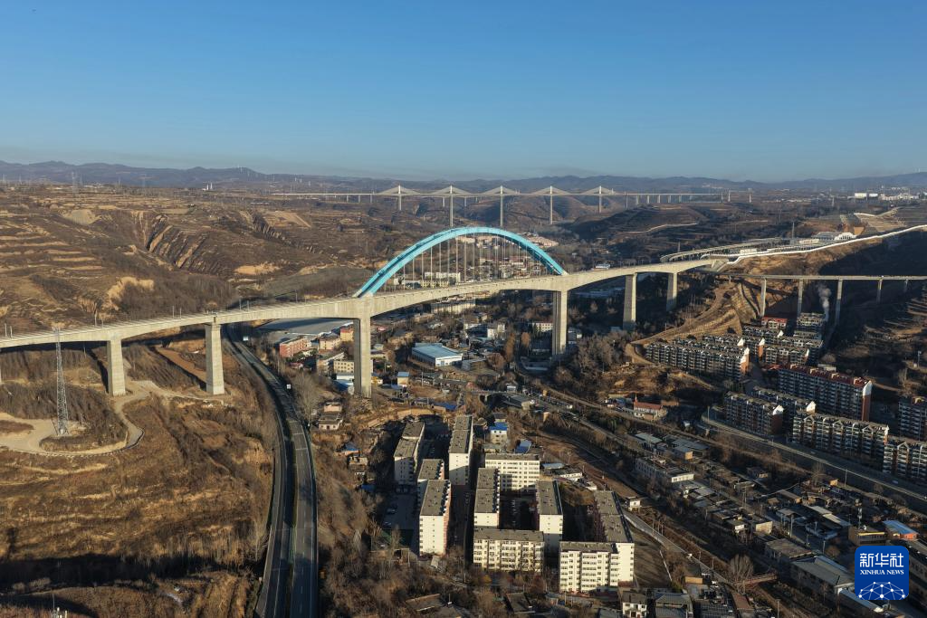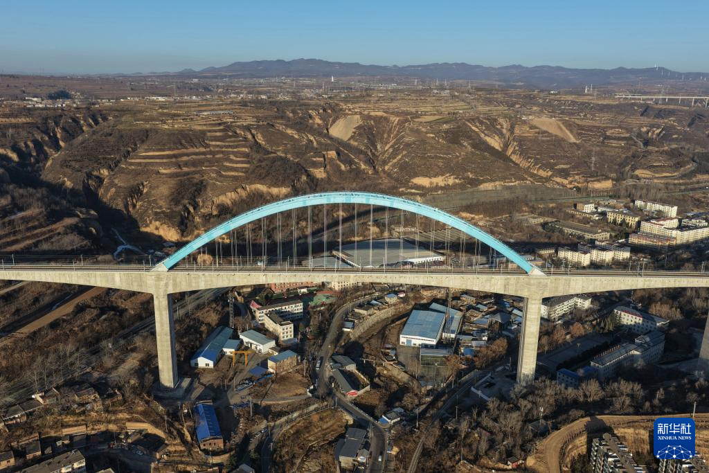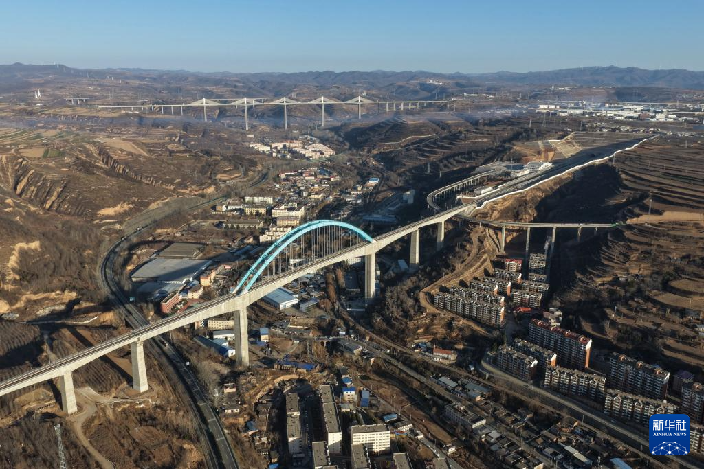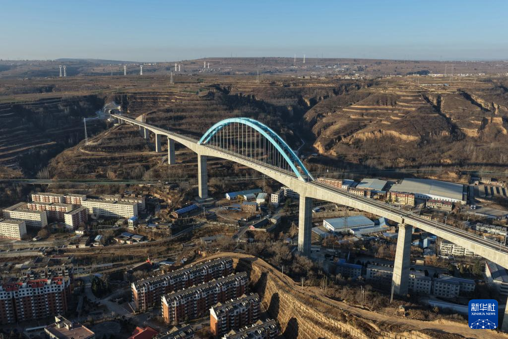 12月25日拍摄的西延高铁王家河特大桥(无人机照片)。