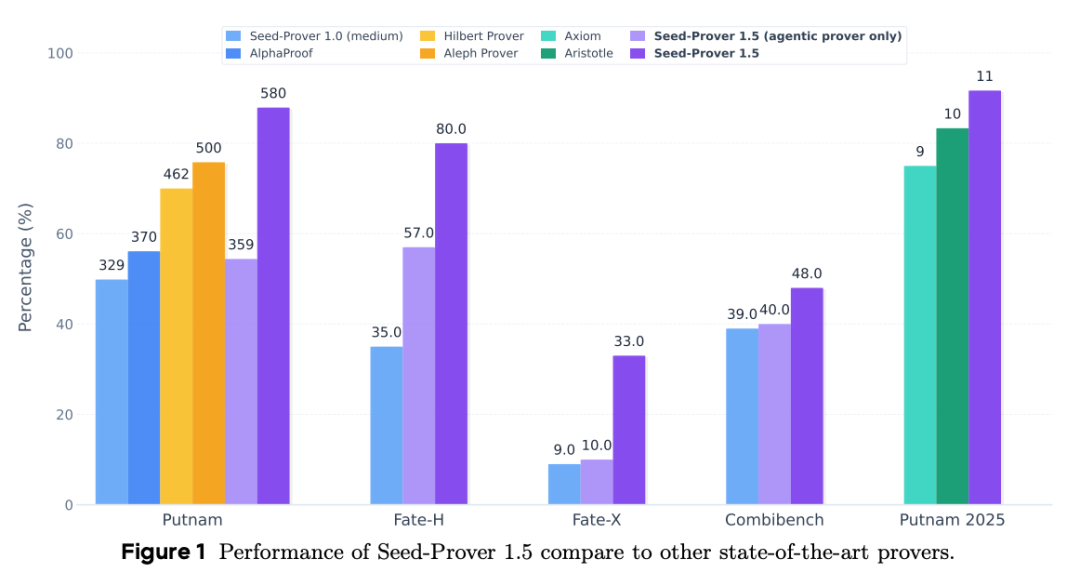 同时,Seed Prover 1.5也在北美本科级别数学竞赛Putnam这一基准上,大幅刷新了SOTA成绩。
