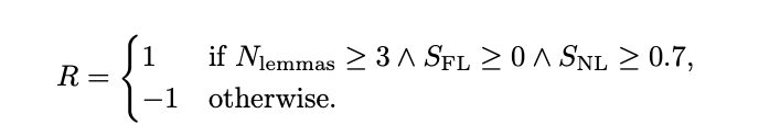 当草稿在形式验证、数学正确性和整体评分上均满足要求时,才会获得正向奖励。