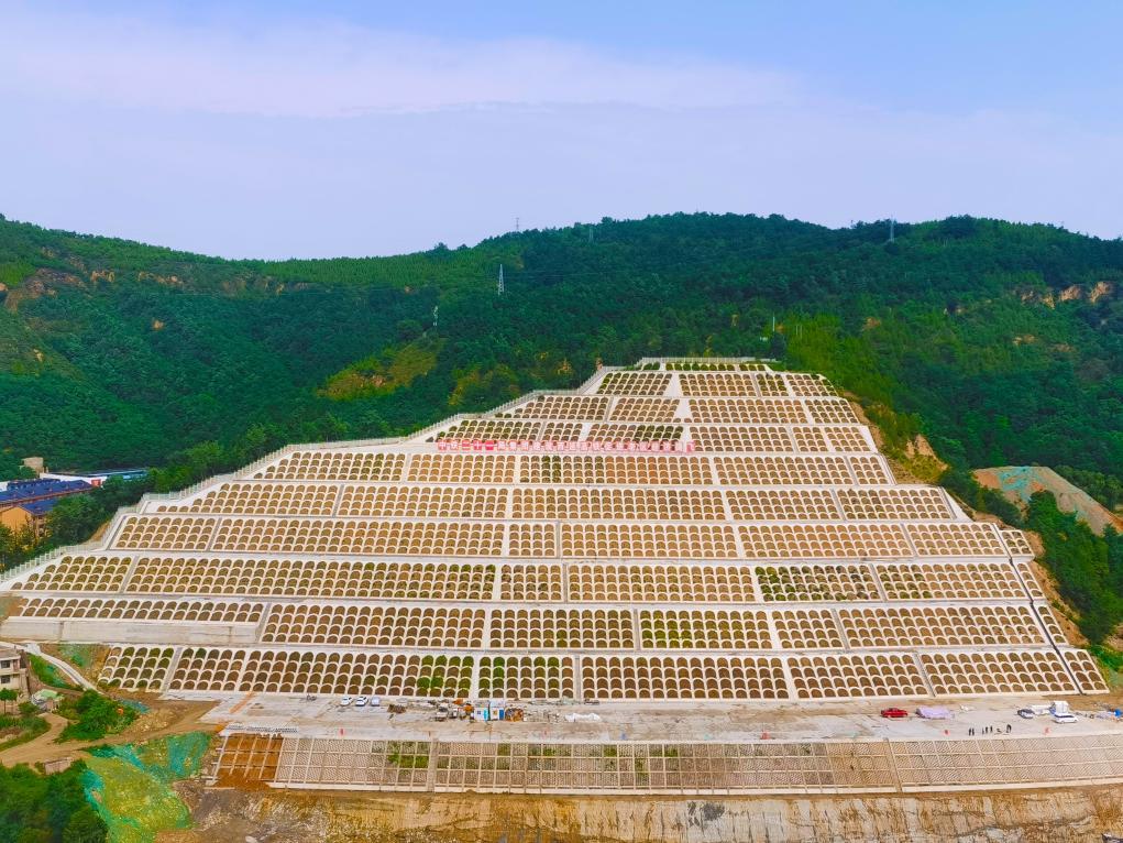 这是中铁二十一局承建的西延高铁延安站路堑十二级边坡防护工程。(受访者供图)